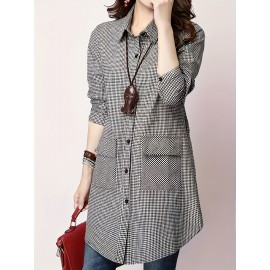 Button Decor Asymmetrical Hem T-Shirt, Casual Ribbed Long Sleeve Top For Spring & Fall, Women's Clothing