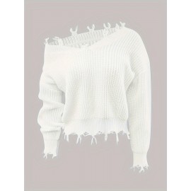Solid Notched Neck Pullover Sweater, Casual Long Sleeve Sweater For Fall & Winter, Women's Clothing